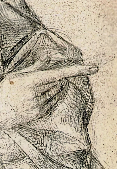 Кроме того, если приглядеться, можно заметить многочисленные исправления карандашом. Дюрер — начинающий художник, однако не боится экспериментировать и учиться на своих ошибках, даже в технике, не допускающей легкого исправления.