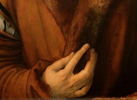 Примечателен и жест Дюрера — он словно благословляет смотрящего на его портрет. Однако и этого было мало автору: свое полотно он подписал так: «Альбрехт Дюрер — второй после Бога». Смело, не правда ли?