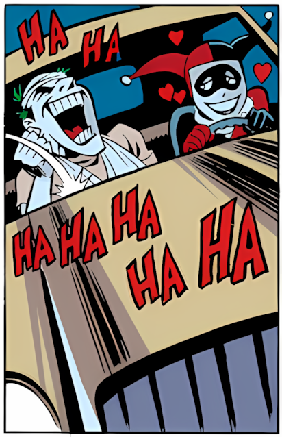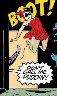 В самом популярном сюжете у Панча была подружка. Это — Джуди, отношения с которой выполняли роль удержания аудитории. Взаимоотношения эти были комичными и безумными, больше похожими на борьбу. Они спорили, дрались, но всегда неустанно улыбались. Именно такую атмосферу между персонажами и хотели передать авторы злодейской парочки в комиксах о Готэме [4].