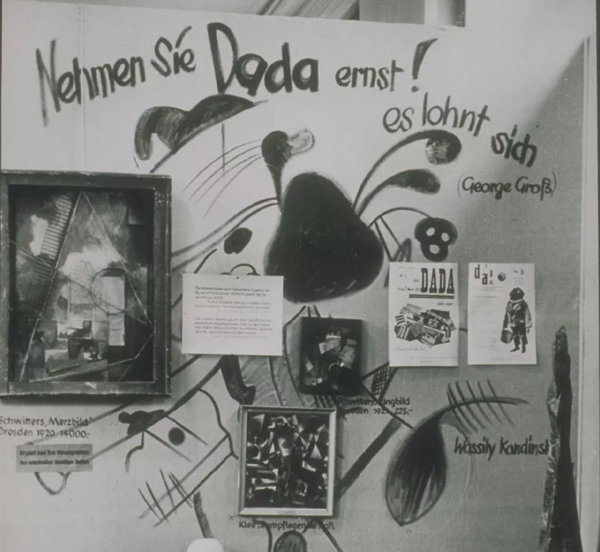 Отдельным жестом была выстроена «Дада» — смесь журнальных обложек, работ Швиттерса и фрагментов Кандинского, которого организаторы по собственной невнимательности записали в дадаисты.