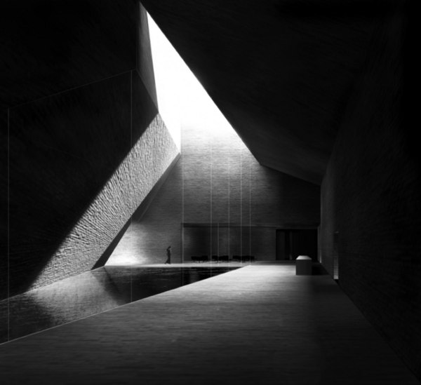 Пространство церкви выстроено из гладкого бетона и прорезано крестообразным разрезом, через который проникает естественный свет. Это архитектура света и тени, где отсутствие украшений превращается в медитативную тишину. Визуальный аскетизм и отсутствие лишних элементов позволяют зрителю сосредоточиться на внутреннем восприятии. «Тишина» здесь — в пустоте, в игре света и материала, в сакральности паузы.