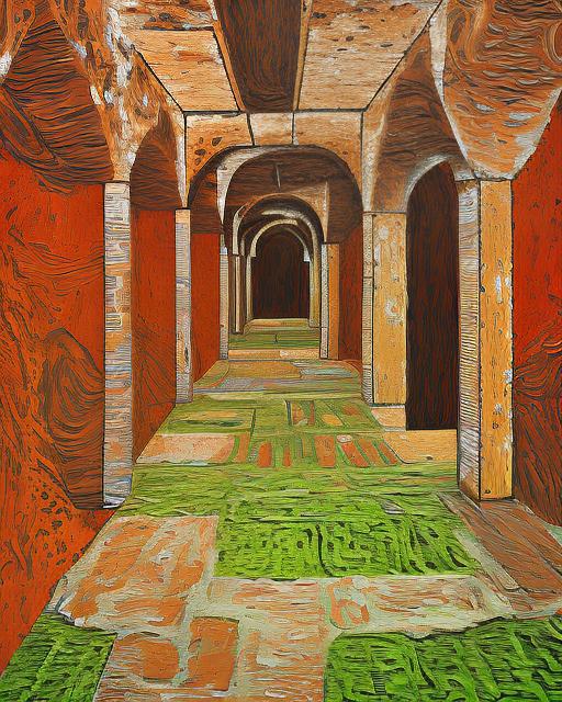 Промпты: An advertising poster for the museum complex named Sulaiman. In the foreground there should be photograph of a dimly lit stone cave interior with a glowing white ceiling overhead and weathered textures. Use red, green and earthy colors.
