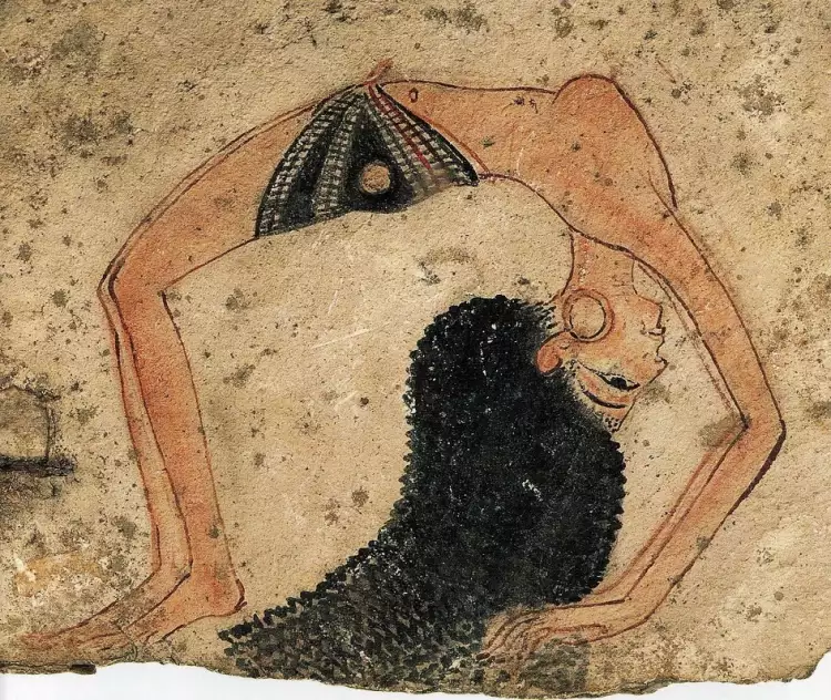 Живопись Древнего Египта. Остракон с изображением акробатки, XII до н. э.