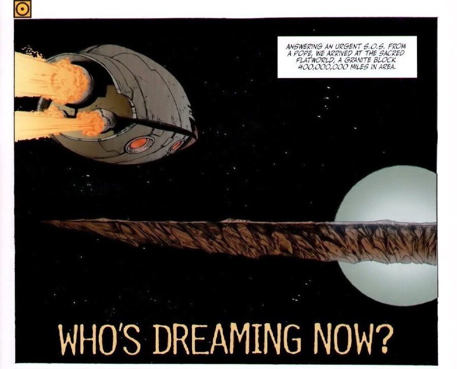 В комиксе «Who’s dreaming now?» образ корабля становится более предметным и имеет характерные сечения на нижней части и 4 отверстия. Создается впечатление, что перед зрителем предстает огромный таракан без лапок или спрятавшаяся в панцирь черепаха.