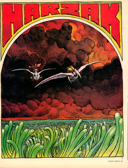 Существенная часть комиксов для анализа берется из журнала «Metal Hurlant» в связи с тем, что основные темы выпусков — фантастика и альтернативные миры. Так, например, одну из обложек можно сразу разобрать по нескольким аспектам: существа и окружающая природа. Персонаж выполнен из множества плавных сигментов, в целом напоминающий тело насекомого, а в земле виднеются пузыри, будто это кожа с волдырями.