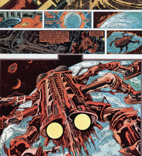У Мёбиуса космическая станция вовсе становится камнем, как будто маскируясь под астероид или метеорит.