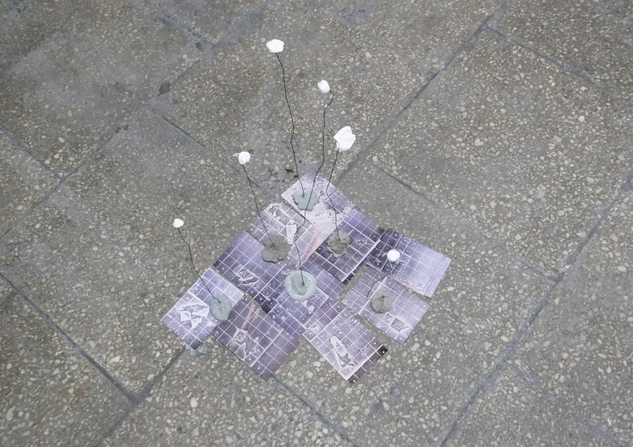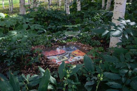 Инсталляции «Сад расходящихся тропок» была создана в рамках саунд лаборатории, где участники делали полевые записи, а свое восприятие района Марфино зарисовывали в технике пиксель-арт.
