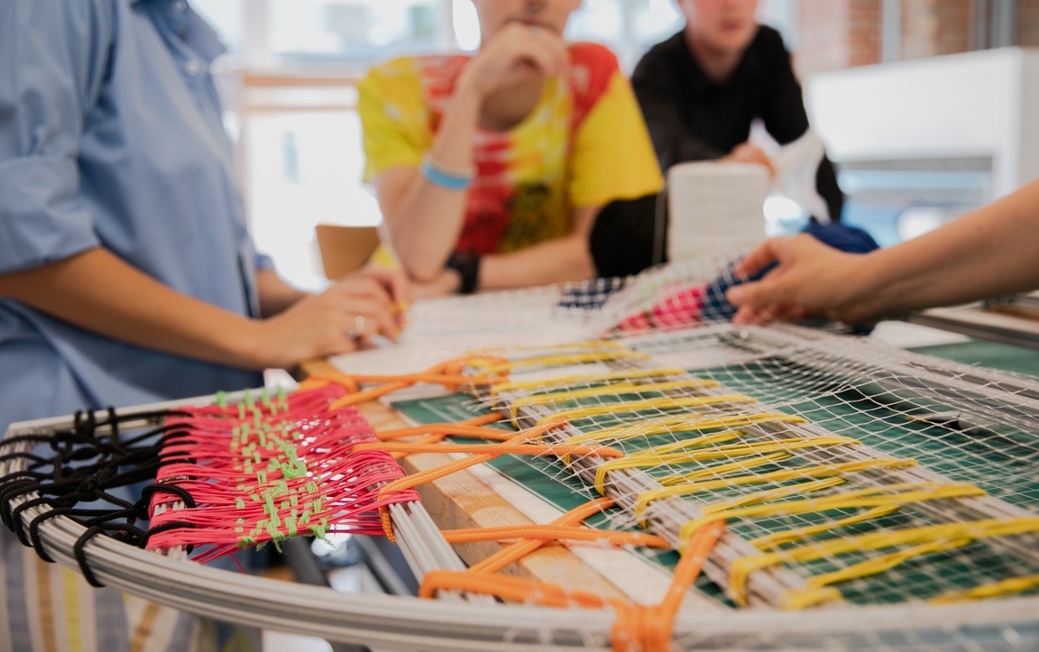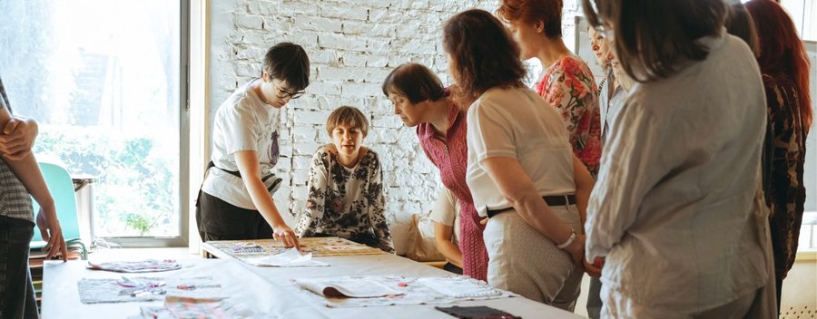 Курс «Содружество/соткачество» был доступен для людей с ментальными особенностями и их сопровождающих, а также для людей без ментальных особенностей. Участники курса изучали различные текстильные практики в формате художественного дуэта. Это позволило посмотреть на принцип помогающей работы, который знаком сопровождающим, с другого угла — с точки зрения художественного производства.