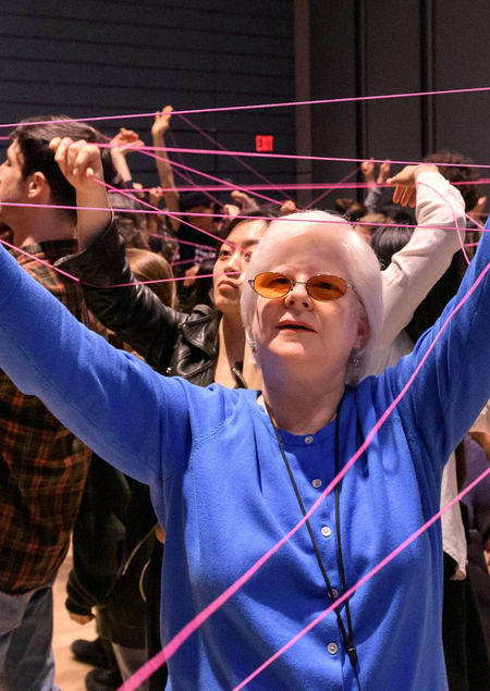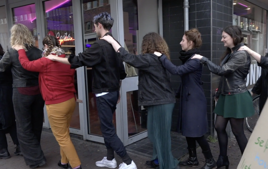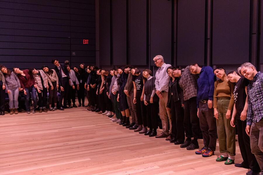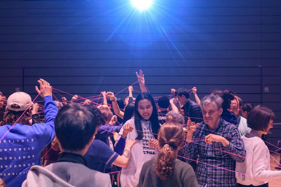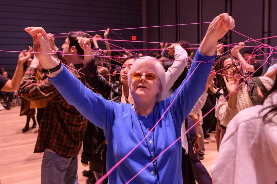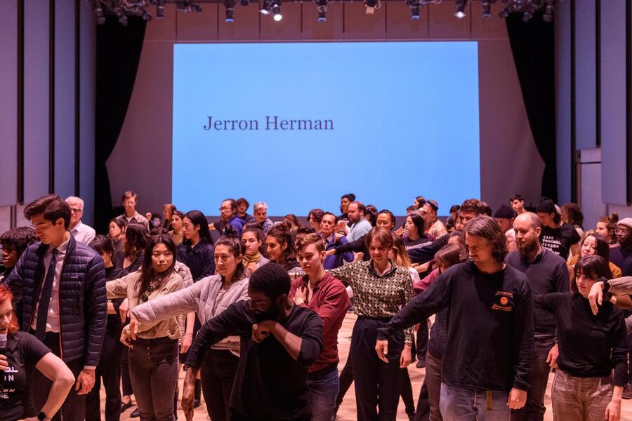 Коллективная танцевальная практика под руководством хореографа и танцора Джеррона Хермана. Distributed Web of Care. 2019