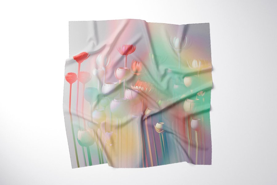 Промт: A stunning minimalist design featuring an abstract pattern of flower buds and inflorescences in the distinctive style of Takashi Murakami. The pattern is vibrant, with a gradient of colors ranging from soft pastels to bold, bright hues. The gradients add a sense of depth and dimension to the floral elements, creating a visually interesting and eye-catching composition. Использованные инструменты: Ideogram, photoshop.