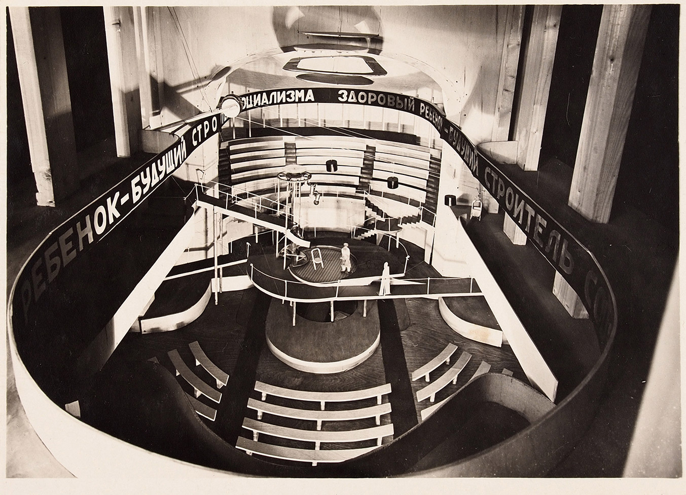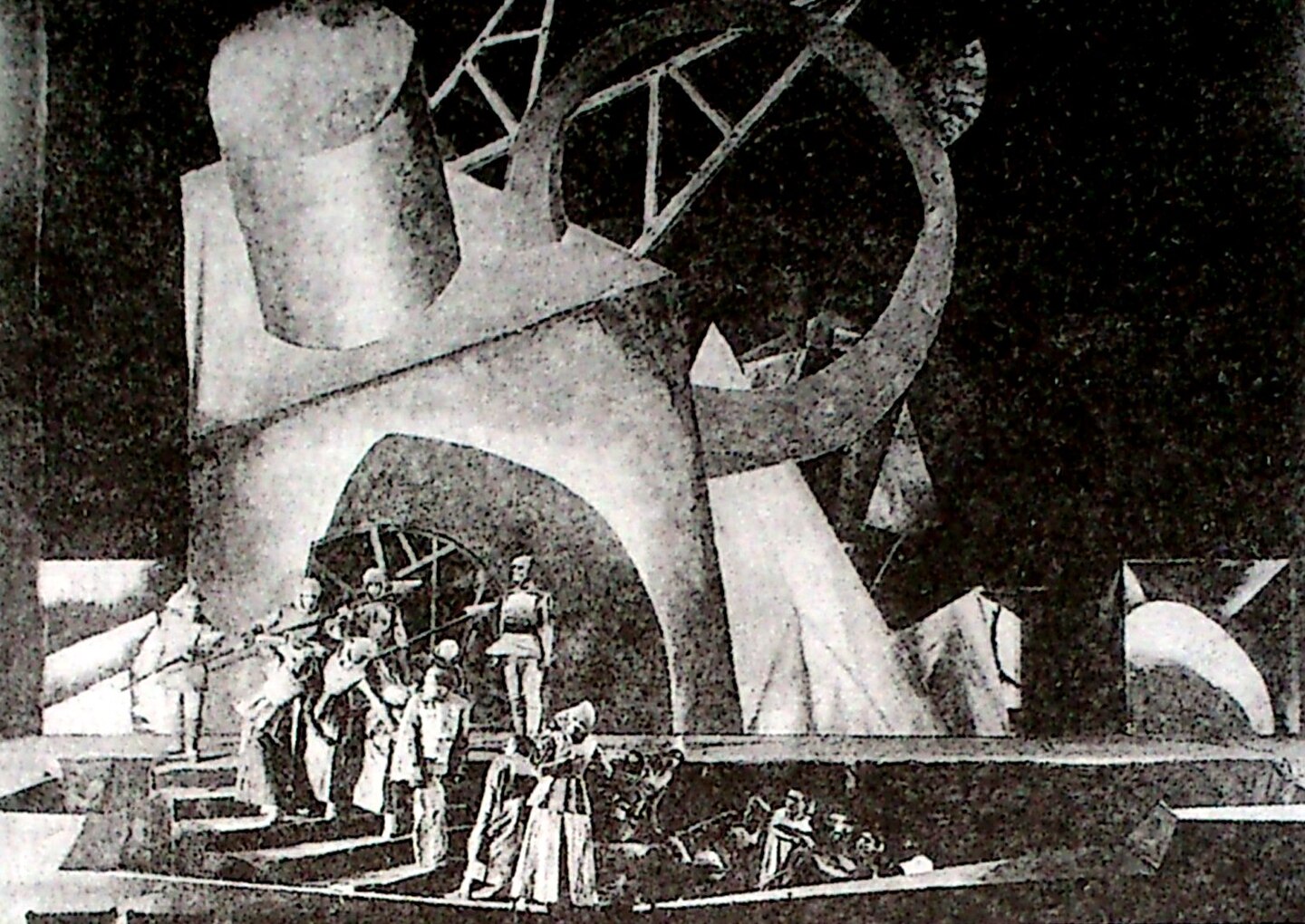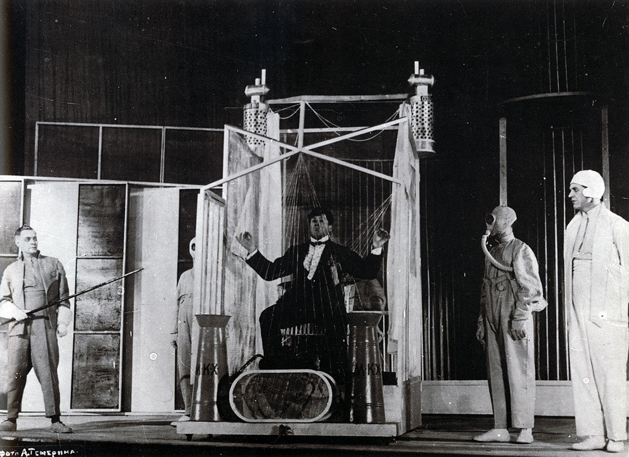 Конструкция, осуществленная по проекту Вс. Мейерхольда архитектором С. Е. Вахтанговым к пьесе «Клоп».