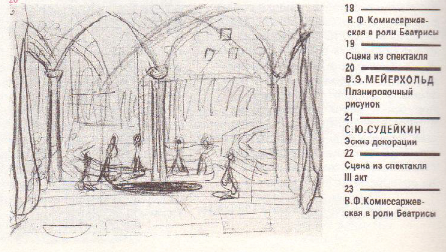 Рубрикатор 1. Концепция 2. Символизм: репертуар и художники (Метерлинк, Ибсен, Сапунов, Судейкин) 3. «Балаганчик» и «Шарф Коломбины»: русский балаган и итальянская commedia dell’arte 4. А. Я. Головин: историзм глазами Мейерхольда 5. Революционные «Зори» и «Мистерия-Буфф» 6. Конструктивистская установка: театр без границ 7. Шлепянов, Шестаков и Лейстиков: от кинетических декораций к принципу архитектурности 8. Маяковский в репертуаре: «Клоп» и «Баня» 9. «Лес» и «Командарм-2»: метафоричность и многофункциональность лестничного марша 10. Эль Лисицкий и театральное строительство будущего 11. Заключение