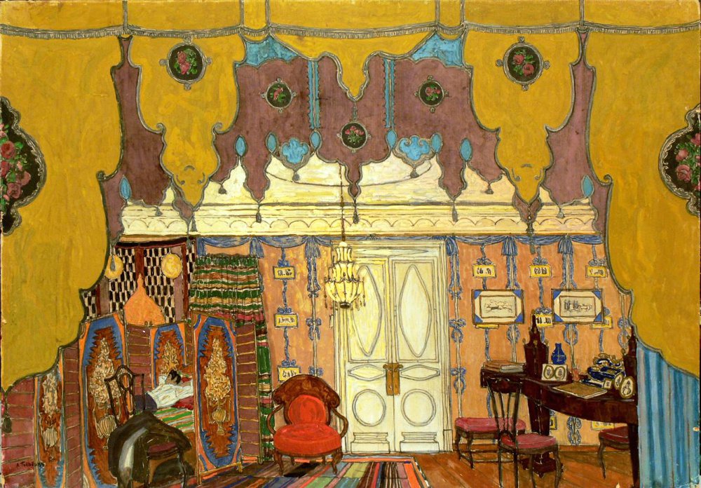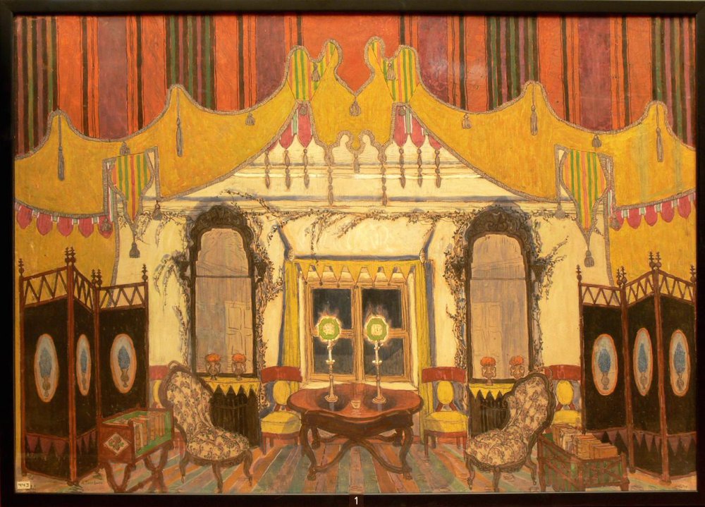 Сапунов Н. Н. Эскиз декорации. Бал. Санкт-Петербург, Товарищество актеров, писателей, музыкантов, художников «Дом интермедий» «Шарф Коломбины» Премьера 12 октября 1910 г.