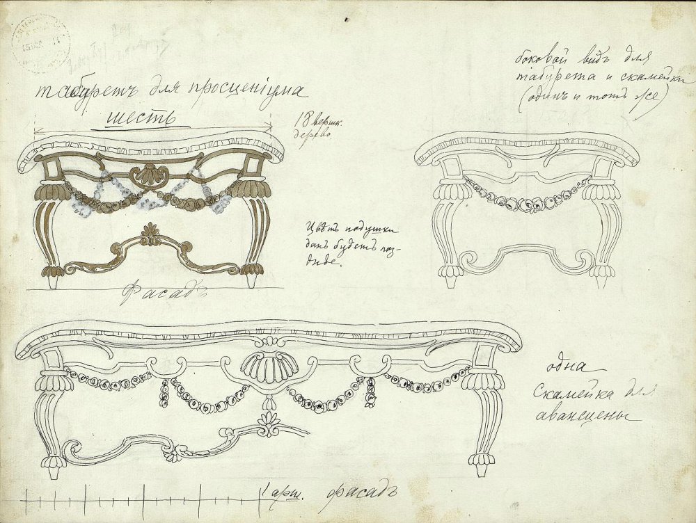 Лейстиков И. И. Альбом. Тетрадь с эскизами цветового решения оформления и мебели. Москва, Государственный театр имени Вс. Мейерхольда. «Список благодеяний» Премьера 4 июня 1931 г.