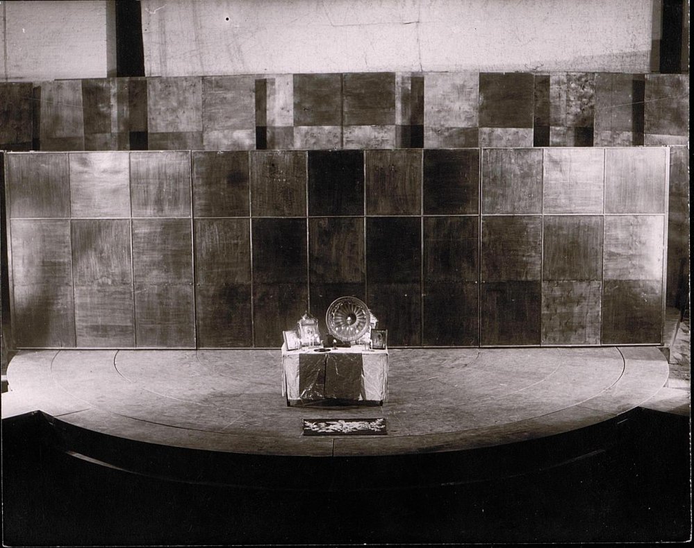Чертеж. Чертеж макетной мастерской. Площадка с вращающимися кругами. Расположение и размеры задних щитов, обрамлявших сцену. Москва, Театр имени Вс. Мейерхольда. «Мандат» 1925