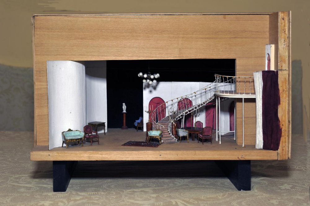 Художник Иоганнес Лейстиков, смакетировал выгородку, использовав возможности неширокой, неглубокой и невысокой сцены. Она была перегорожена по диагонали тонкой стеной-щитом, задрапированной ренуаровских занавесами. В правой части открывалась лестница в стиле ар-нуво. В левой части стояли предметы антикварного мебельного гарнитура. По ходу действия слева обозначался салон Маргерит с ее антиквариатом, а справа салон Олимпии с большим зеленым карточным столом, за которым сидели гости. И вся эта выгородка — своей легкостью, прозрачностью напоминала карточный домик: достаточно сильного дуновения, и все исчезнет, все рухнет.