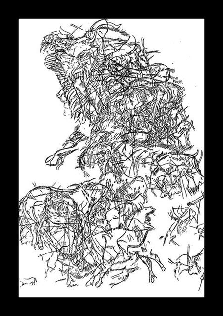 Анри Брейль, «Гравюра с изображением бурого медведя, пронзённого копьями и, по-видимому, истекающего кровью, пятнистого, как пантера», 1930 г.