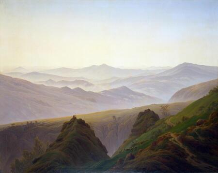 Каспар Давид Фридрих — «Утро в горах» (1818) и «Утро в Тюрингенском лесу» (1808).