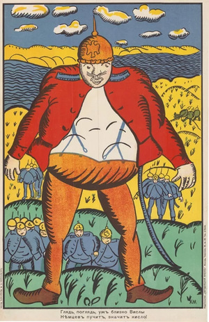 Казимир Малевич, «Глядь, поглядь, уж близко Вислы немцев пучит, значит, кисло», литография, 1914