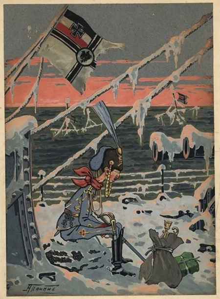 А. Панин, «На замерзшем корабле», гуашь на бумаге, 1914-15