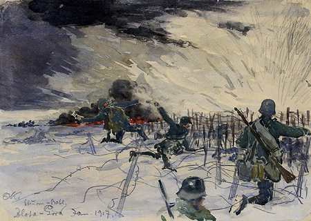 О. Энгельхард-Кифхойзер, «Похороны на передовой», 1916 и «Злата-Гора. Бой у проволочного заграждения», 1917