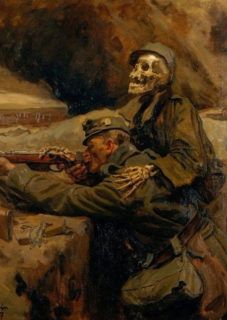Дадаисты не редко использовали сюжеты Первой мировой в своих работах, как, например, Отто Дикс, который к моменту назревания Второй мировой войны был причислен фашистской Германией к представителям «деградирующего искусства». Конечно, все они выражали антивоенную позицию.