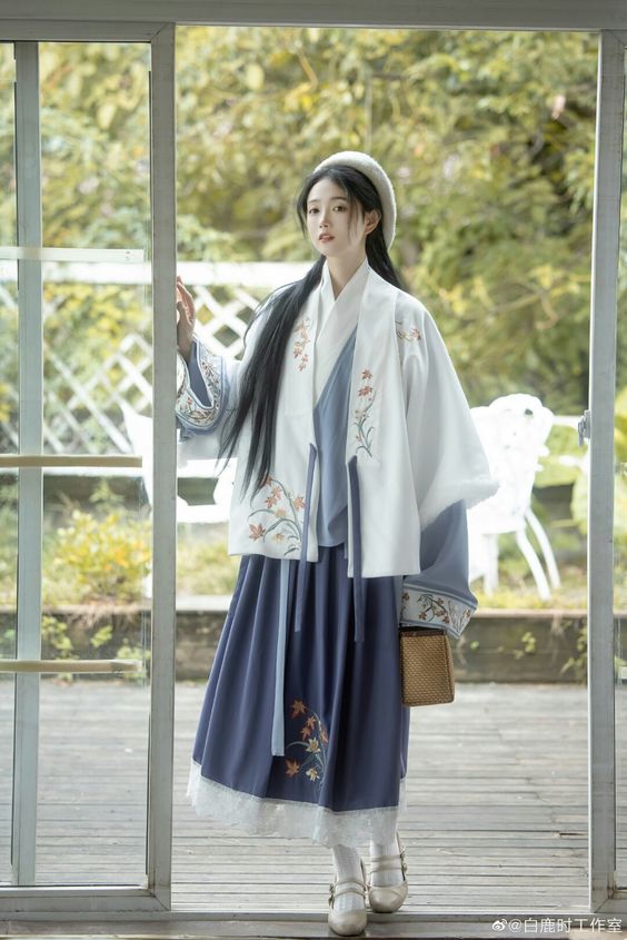 Жуцюнь (襦裙) — основное женское Ханьфу, состоящий из топа жу (襦) и юбки с запахом цюнь (裙).