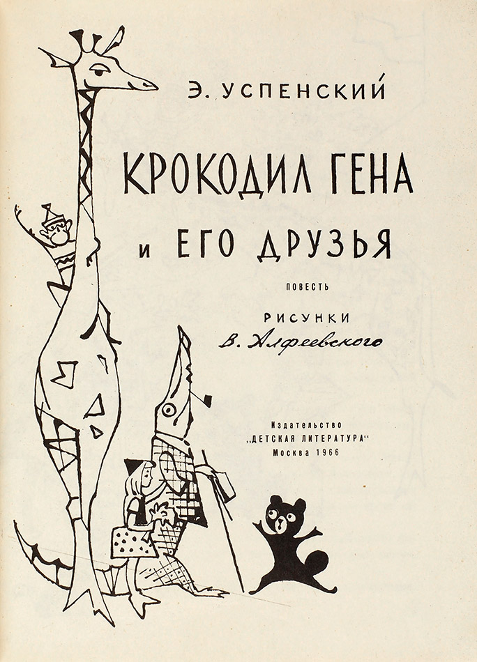 [Первое издание] Успенский, Э. Крокодил Гена и его друзья. Повесть / рисунки В. Алфеевского. М.: Детская литература, 1966.