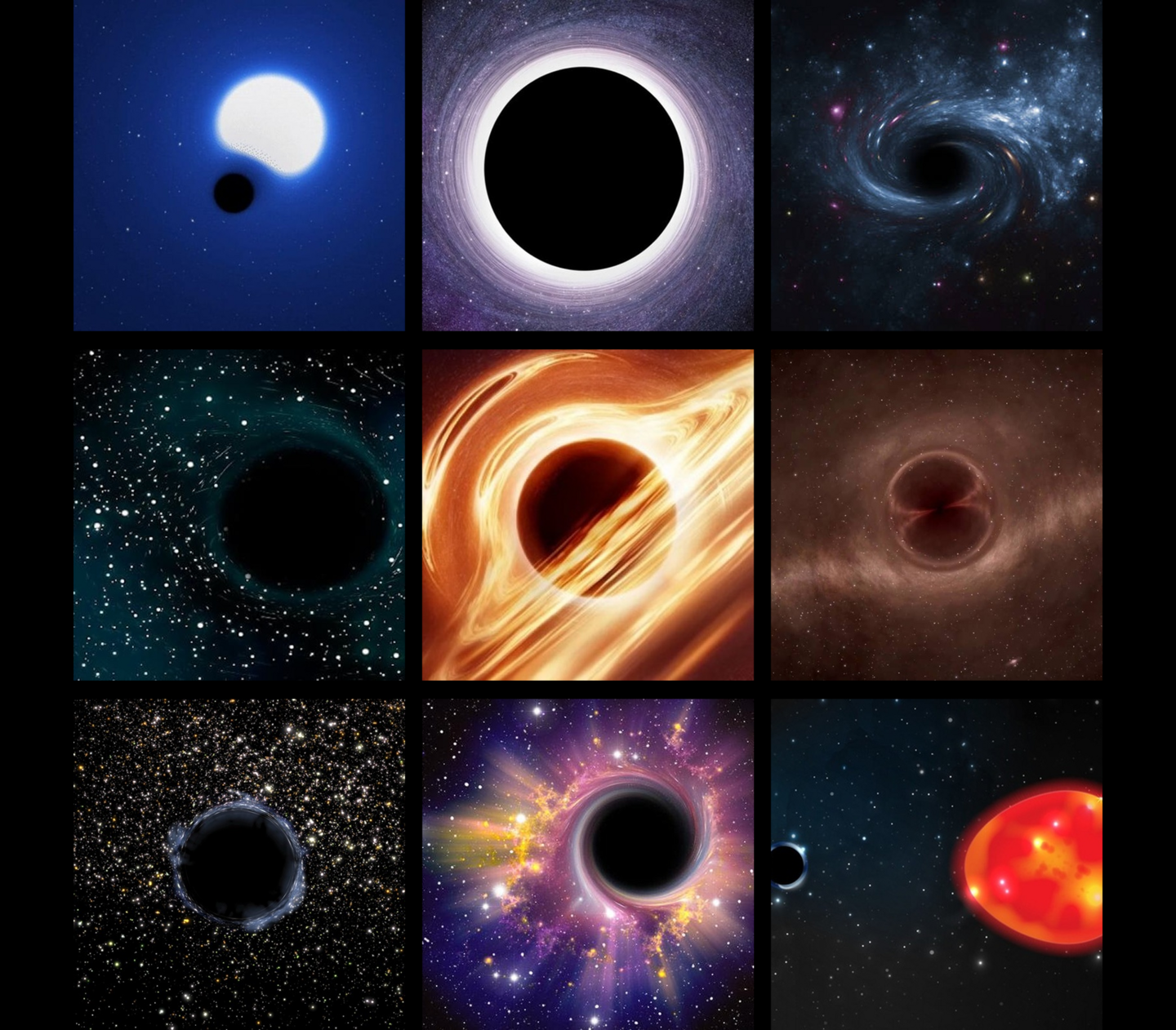 Поэтому я решила поэкспериментировать и создала с помощью Stable Diffusion свои версии черных дыр.
