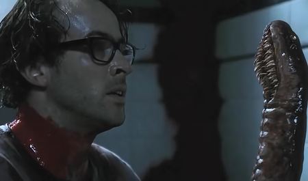 Фильм «Повреждение мозга» (1988) Фрэнка Хененлоттера показывает, как тонка грань между симбиозом и паразитизмом. Червеобразное существо Элмер впрыскивает наркотическое вещество своему хозяину, которое вызывает у человека яркие галлюцинации. Со временем паразит не становится единственным «союзником» героя. Эта динамика служит идеальной аллегорией аддикции: паразит не усиливает носителя, а превращает его в своего помощника, маскируя свои действия под риторику взаимной выгоды.