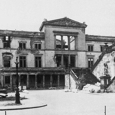 Разрушенный во время Второй мировой войны Большой дворец Петергофа (1944) // Arzamas URL: https://arzamas.academy/materials/487 (дата обращения: 25.11.2025).