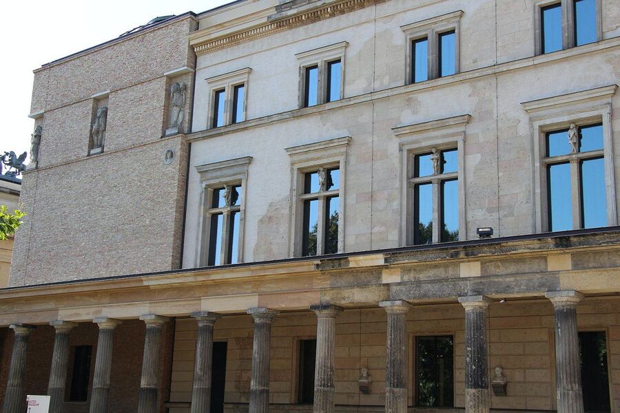Новый музей — это прецедент, который демонстрирует процесс интеграции современной архитектуры в историческую, где «оболочка» превращается в центральный артефакт экспозиции. Здание, построенное архитектором Штюлером в XIX в. в стиле позднего классицизма, сильно пострадало в годы Второй мировой войны, намного больше, чем рядом стоящие соседи. Из-за этого руины прожили в нетронутом состоянии вплоть до 90-х годов двадцатого столетия.