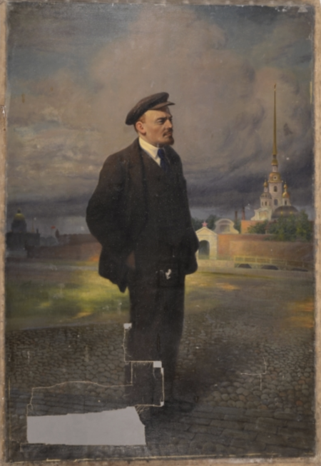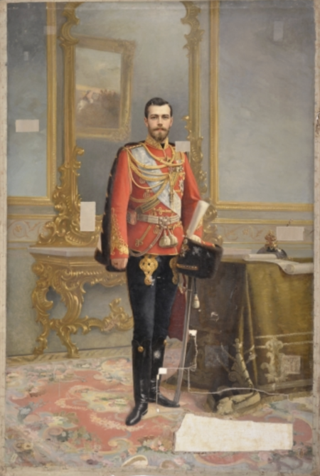 В процессе рядовой реставрации портрета Ленина, висевшего в одной из ленинградских школ, вскрывается, что на обороте холста все это время покоился портрет последнего российского императора. В процессе реставрации удалось сохранить оба портрета, подчеркнув следы революционных повреждений. Заплатки, царапины, потертости специально оставлены видимыми, дабы подчеркнуть травматичный опыт, который пережил объект.