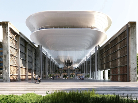 В рамках реставрации архитекторы решают задачу по превращению деградирующей промышленной территории в культурный кластер. Проект строится на сочетании памяти и инноваций: подлинный бетонный фасад склада будет сохранен, тогда как его старая крыша уступит место парящей сфере. Индустриальная эстетика ретранслируется в новом для жителей контексте, но поддерживает связь с традицией.