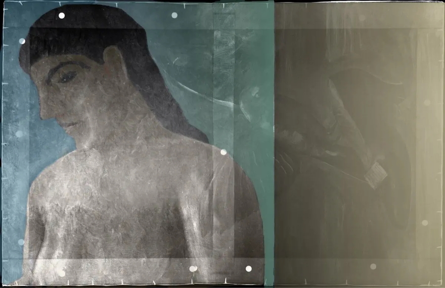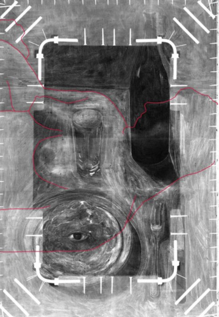 В 2013 был обнаружен первый фрагмент оригинальной картины («Портрет» 1935), когда реставраторов насторожила нехарактерная для художника роспись краев холста. Применение рентгенографии позволило заглянуть под красочный слой и выявить скрытое изображение, подтвердившее давнее предположение.