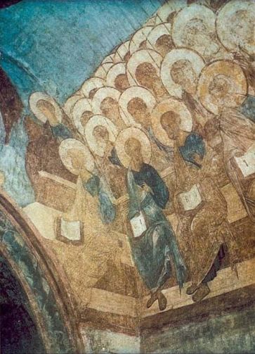 Фреска Успенского собора, Андрей Рублев (1408) // Азбука URL: https://azbyka.ru/otechnik/ikona/istorija-drevnerusskoj-zhivopisi/6_4 (дата обращения: 26.11.2025).