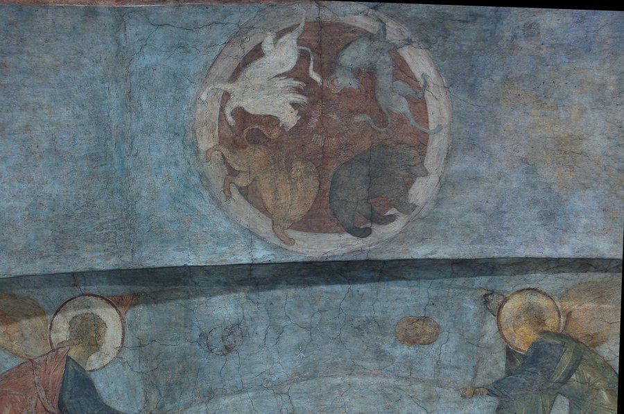 Деталь фрески Страшный Суд с изображением апостола Марка, Успенский собор, фотография: Вишневский (1948-1952) // Культура.РФ URL: https://www.culture.ru/materials/257597/chto-skryvayut-proizvedeniya-iskusstva (дата обращения: 26.11.2025).