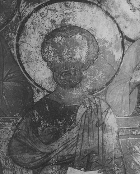 Страшный Суд, фреска Успенского собора, Андрей Рублев (1408) / Деталь фрески Страшный Суд с изображением апостола Марка, Успенский собор, фотография: Вишневский (1948-1952).