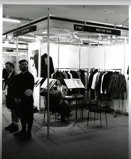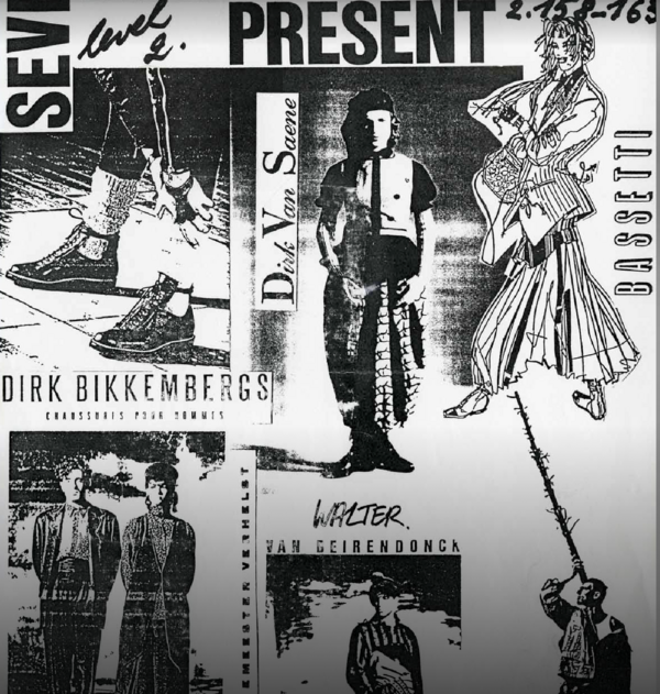 1. Уолтер Ван Бейрендонк и Дирк Ван Сен на выставке британских дизайнеров, 1986 год 2. Афиша Британского дизайнерского шоу 1986 г.