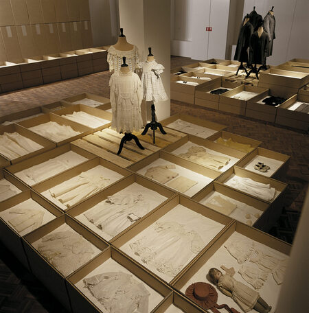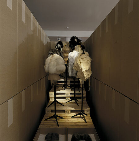 Картонные коробки для хранения модных предметов MoMu.Выставка «Selection I: Backstage» 2002–2003 гг.
