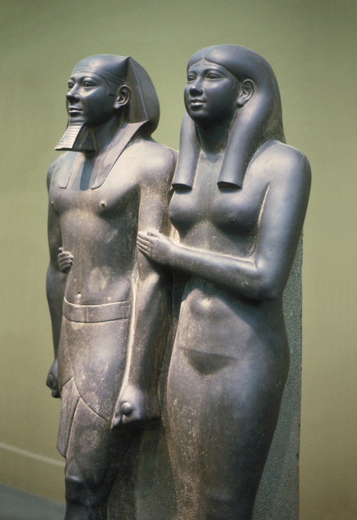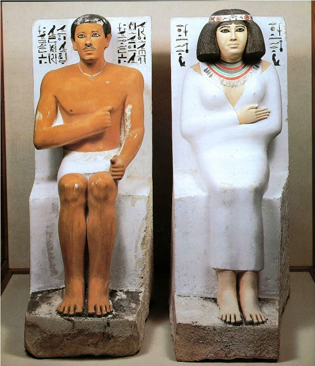Несмотря на каноничность, строгие правила в изображении скульптур в Древнем Египте, изображение семьи, супружеских пар передает теплые, близкие взаимоотношения между мужем и женой. Когда женщина изображена рядом с мужем в скульптуре, она всегда будет держать свою руку на его талии либо на плече. С помощью такого приема скульпторы подчеркивали, что роль древнеегипетской жены — воодушевление, поддержка мужа.