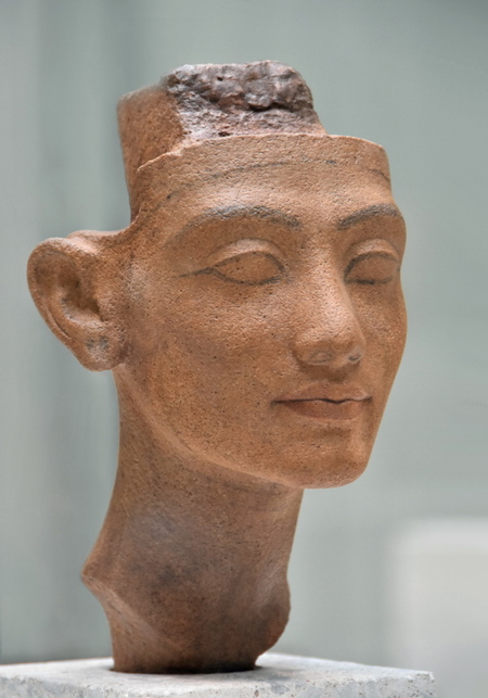 слева направо: Принцесса из семьи Эхнатона, предположительно Меритатон, ок. 1340 г. до н. э., Голова Нефертити, ок. 1340 г. до н. э.