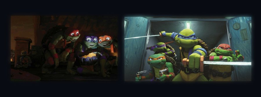 Аналогично поступили и в Paramount Pictures. Картиной в схожей стилистике можно назвать очередной ребут «Черепашек-Ниндзя» в 2023. В данном проекте мы видим все те же визуальные приёмы Миельго.