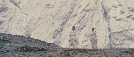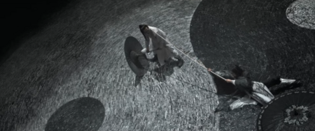 В сцене боя у озера природа опять становится главным действующим лицом. Статичная природа, всплески воды и парящий бой героев создают идеальную гармонию в композиции кадра, воплощая принципы Инь и Ян.