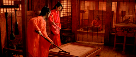 В начале фильма «Герой» Чжана Имоу мы видим дворец императора, в который приходит Безымянный герой на аудиенцию.