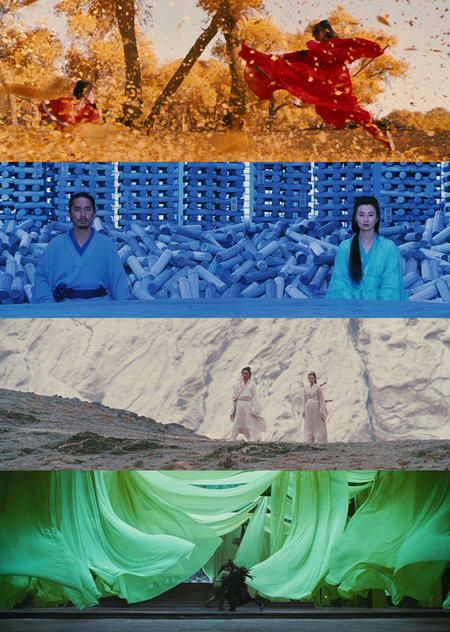 В фильме используется много работы со светом. В частности в сценах боя часто присутствует дождь, туман и полумрак, что делает сцены многоплановыми и объемными. Также используется замедленная съемка. Такой визуальный ряд передает идею непостоянства и созерцательности. Тени в режиссуре кадров передают тоску по уходящему. Сцены боя — это не про желание победить, а про личностный рост, медитацию и рассуждение о времени.
