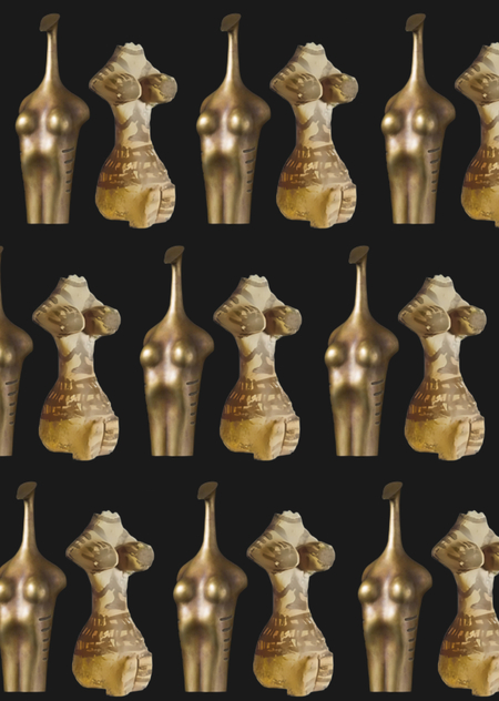 Многие статуэтки характеризуются отсутствием конечностей. В скульптуре Даши Намдакова также не изображены руки и голова. Акцентом является грудь, она символизирует идею женственности и отсылает к плодородию и материнству, как и в древности.