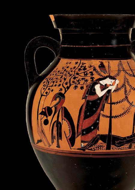Однако самое большое место отдается повествовательным сценам. Теперь орнамент уходит на второй план, заполняя собой свободные от изображения персонажей места. Источником сюжетов для такого рода примеров живописи становятся греческие легенды и мифы. Этот стиль получил название ориентализирующий стиль.