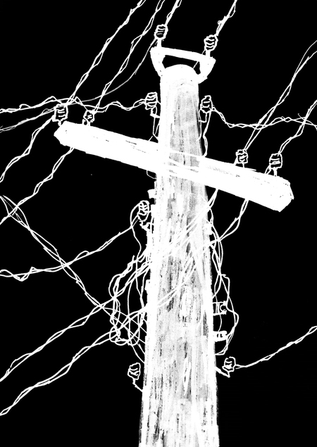 В скетчбуке я постарался изобразить линии электропередач как со спокойной стороны,