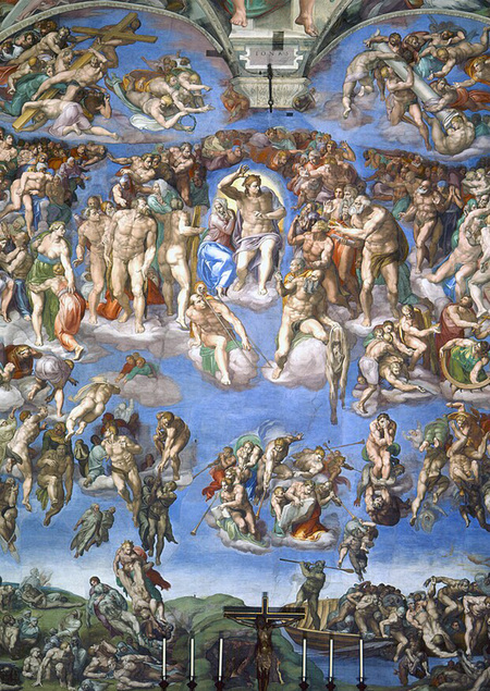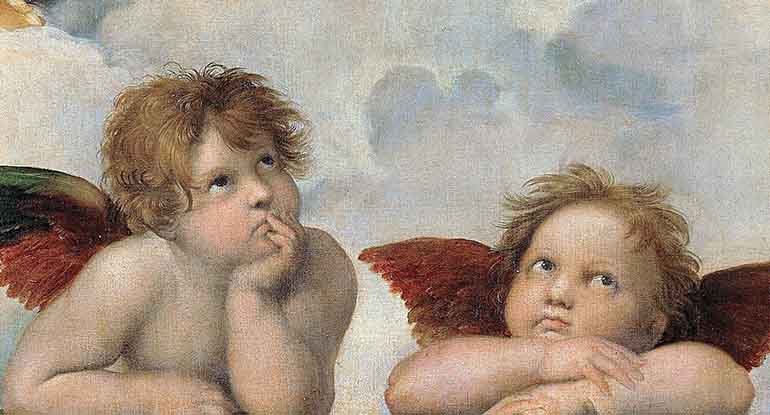 Ангелы: их вглядывайся направлен вверх на Младенца Христа и Мадонну. Они совершенно спокойны и даже немного безразличны ко всему. Это предполагает то, что они надеются только на Христа и только в его силы.